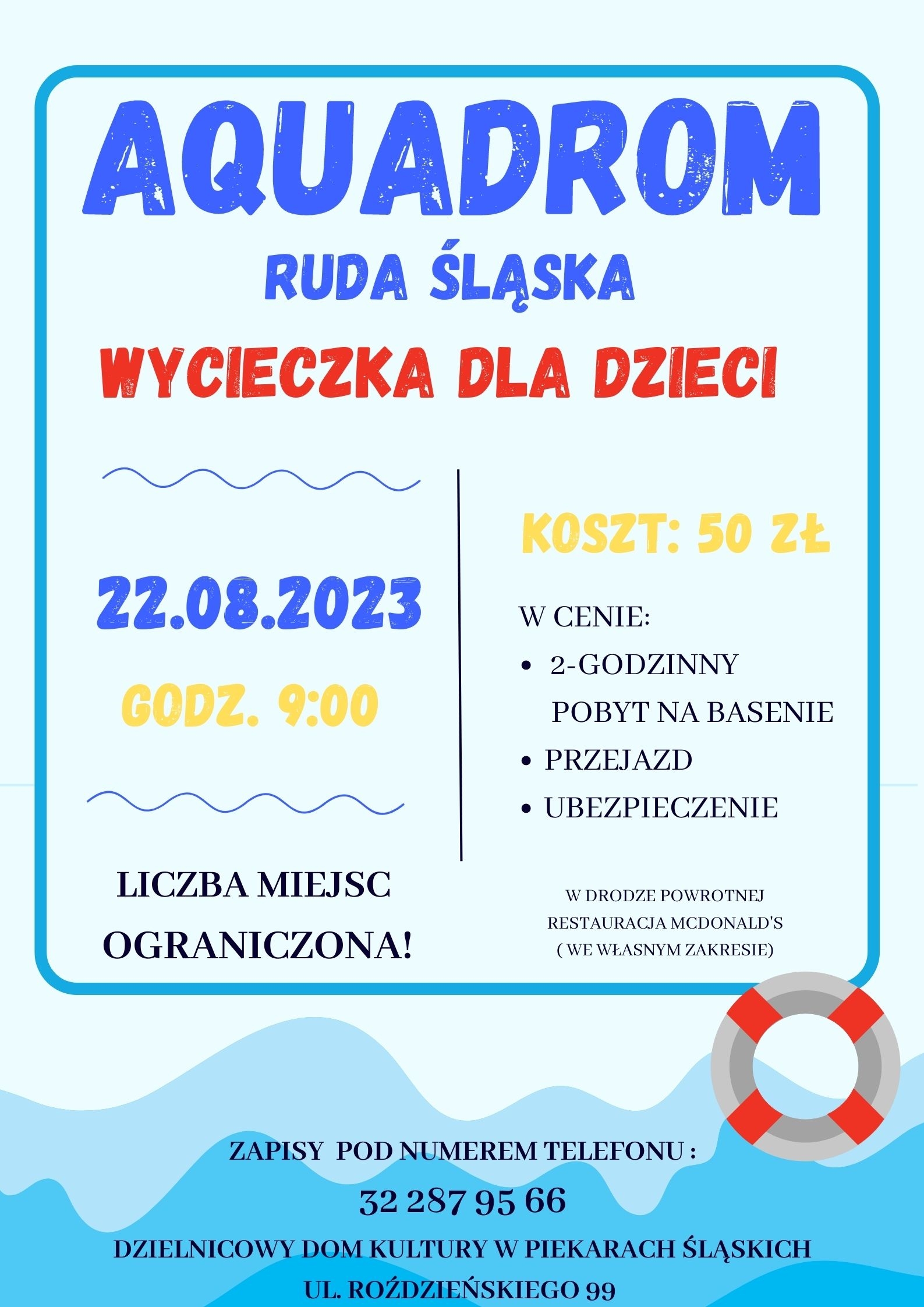 Dzień pełen aktywności! Pojechaliśmy z dziećmi do parku wodnego Aquadrom w Rudzie Śląskiej tam nie zabrakło dobrej zabawy. Po wejściu na basen pierwszym Naszym przystankiem była obowiązkowa lekcja z ratownikiem który opowiedział o regulaminie basenu oraz bezpieczeństwie. Największą atrakcją dla dzieci była ogromna bańka na którą wcale nie było łatwo się wspiąć ale nie zniechęciło to ich do małej zdrowej rywalizacji