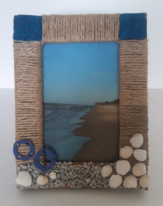 Wyciętą ramkę owijamy sznurkiem jutowym.